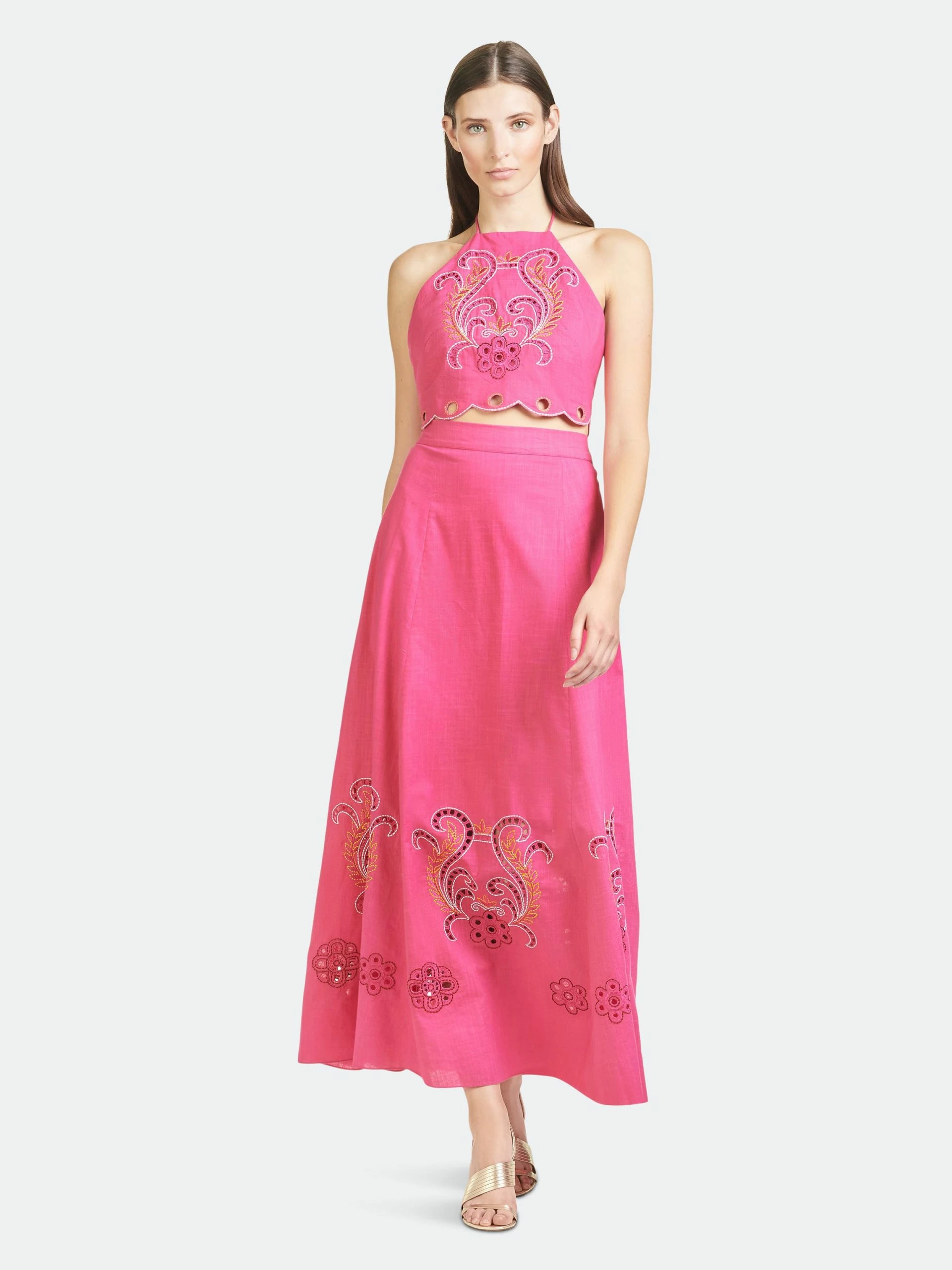 Colleen is what we call an “Important Skirt”. She is very easily the eyecatching go-to you keep in your closet for that special fete or… she is the skirt you rely on for a pop back to your favorite white-t and sandals. This skirt is whatever you need her to be, an elevated warm-weather cocktail-ready style, or your favorite fashion skirt you wear as often as you can.