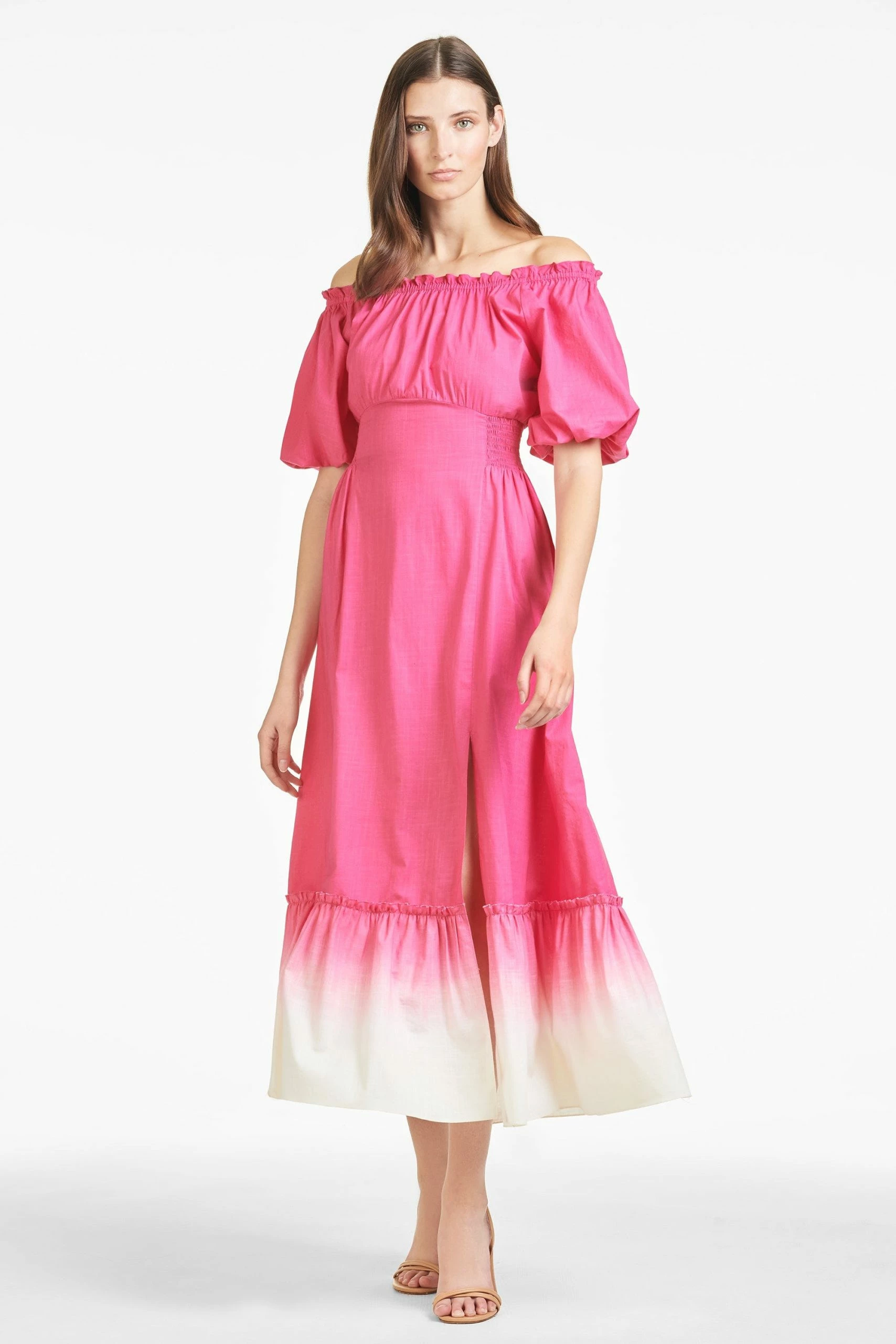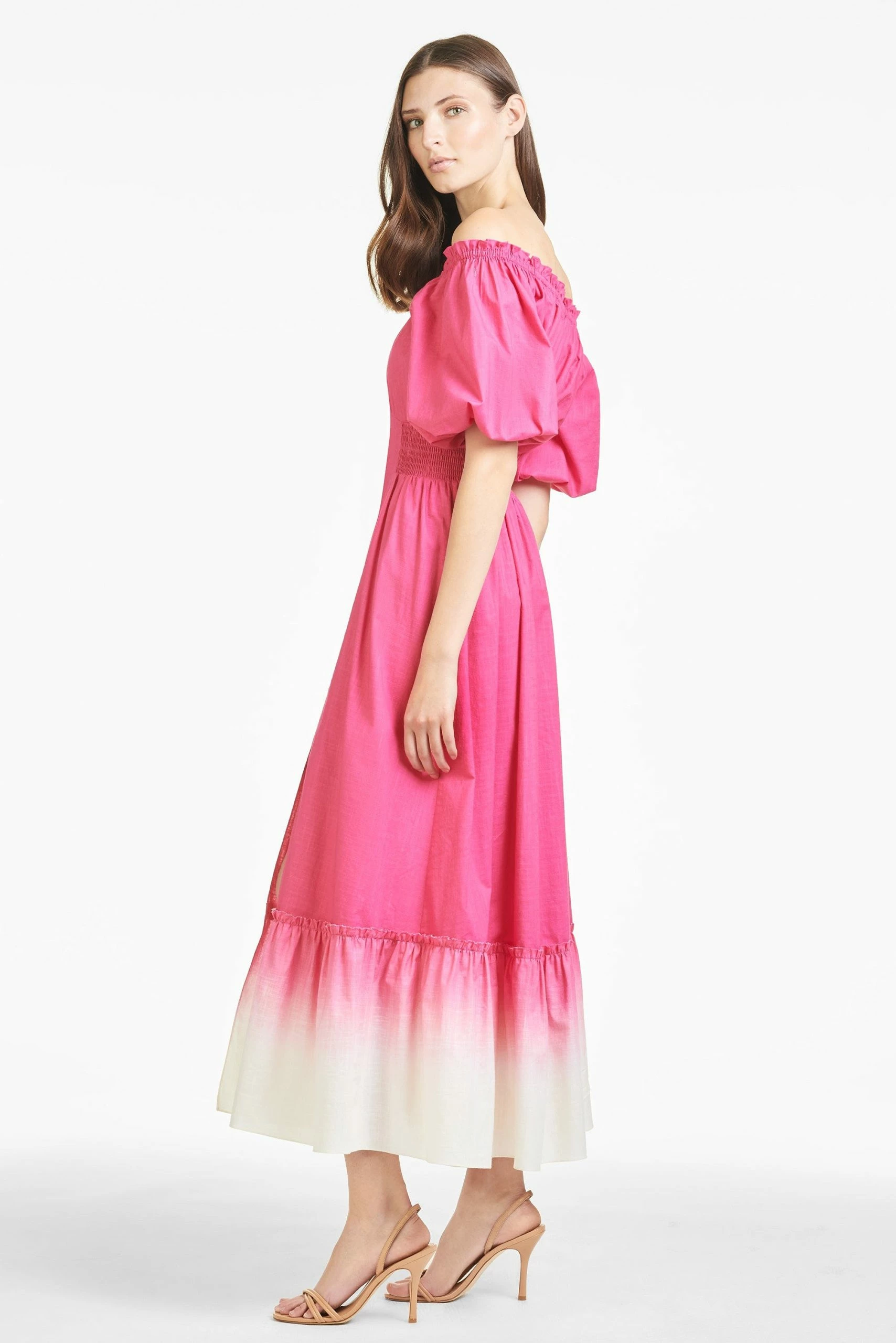 Honestly, we should all have Martina in our closets, she is that dress that fits so well you want to live in her. The neckline is arguably one of the most flattering you can wear, the clavicle and shoulders are always beautiful, and the waistline is augmented by smocking at the back so it will fit you like it was made for you, and the little flourish at the hem gives the dress a designer touch. Let us not forget the color, there isn’t a skin tone that doesn’t love fuchsia, and just as a bonus, hand-dyed shibori is used to create visual interest.Sachin and Babi believe in celebrating every day, dressing with joy, and creating clothes that inspire beauty and confidence. Here’s to the moments we make, and the moments that make us. Cheers!