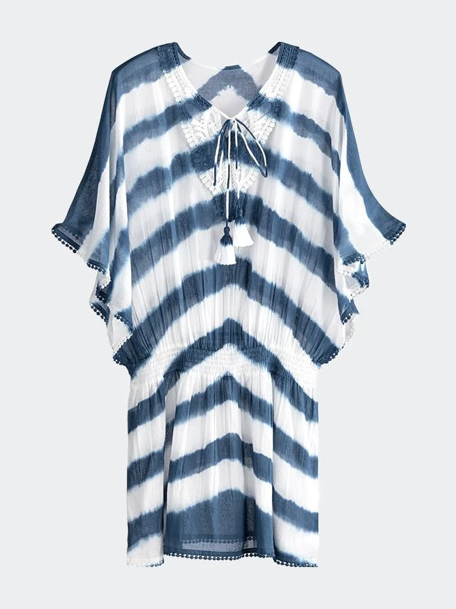 Create a chic poolside look with Shiraleah’s Sam Cover-up. This cover-up features a tie dye print, cinched waist, and crochet neck details, making it the perfect addition to your relaxing day near the water. Made from cotton, and one-size, the Sam Cover-Up is lightweight and breathable for comfortable wear. Pair with other items from Shiraleah to complete your beach ensemble.