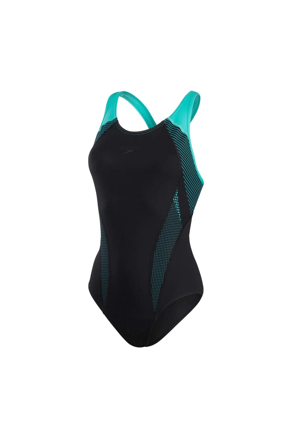 Get your workout in in our flattering Black Laneback Swimsuit with contrasting blue straps and graphic tech-inspired panel details. The lower leg band and mid-cut bust ensure that you feel comfortable and secure during your physical workout. Engineered to be durable and better for the environment.