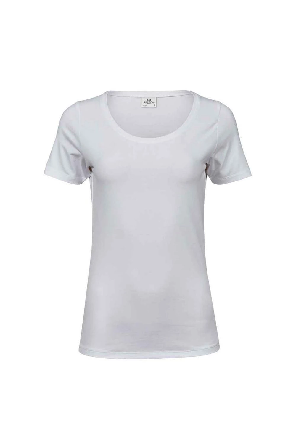 – Fabric: Enzyme washed, stretch.- Design: Plain.- Neckline: Crew neck, ribbed.- Sleeve-Type: Short-sleeved.- Side seams, twin needle stitching.- 195gsm.