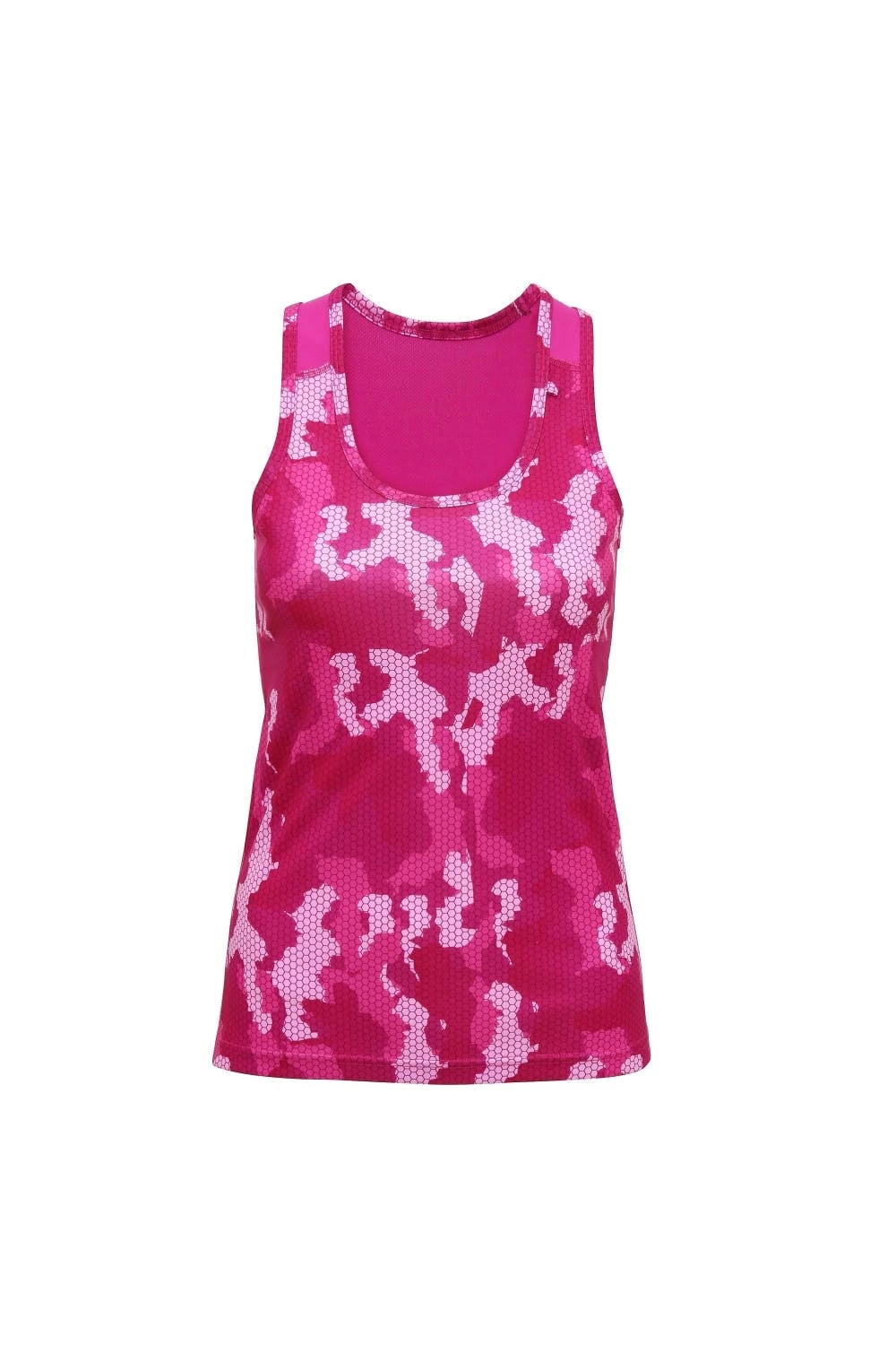 – Womens vest.- Wicking fabric.- Scoop neck.- Racer back.- Curved hem.- Mesh panel on the upper back.- Sleeveless.- Moisture wicking.- Lightweight.- Twin needle stitching on neck, arms and hem.- Hexagonal camo print.- Tight fit.- 135gsm.- Fabric: 100% Polyester..- Gender: Women
