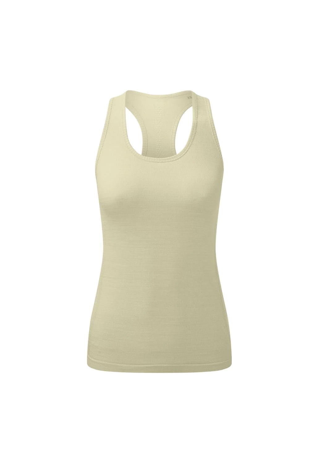 – 41% Polyester, 41% Recycled Nylon, 18% Nylon.- Fabric: Melange.- Design: Plain.- Fit: 3D.- Back Style: Racerback.- Neckline: Round Neck.- Sleeve-Type: Sleeveless.- Contoured, Ribbed Detail, Seamless.- Fabric Technology: Flexible, Moisture Wicking.- Length: Full.- 290gsm.- Sustainability: Amfori, BSCI, Eco Friendly, Made from Recycled Materials, Sedex, WRAP Certified..- Gender: Women
