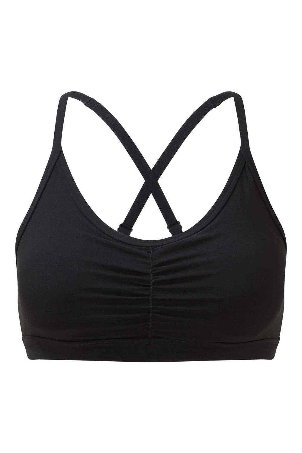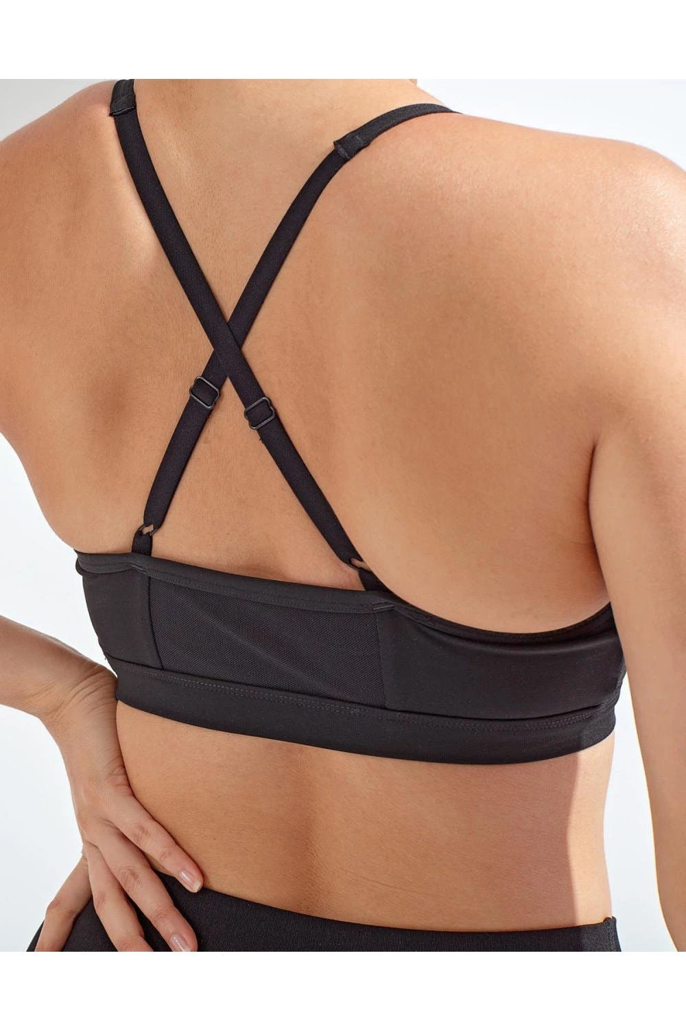 – 74% nylon, 26% elastane.- Design: plain.- Back style: cross back.- Fastening: pull-on.- Neckline: round neck.- Sleeve-type: sleeveless.- Adjustable strap, elasticated, padded.- 210gsm..