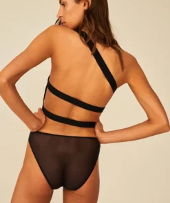 Reach for the stars is a fantastic bodysuit with a geometric shape on the back and asymmetric shoulder straps. The open back, decorated only with elastic rubber makes you want to reach for the stars every time you wear this bodysuit.