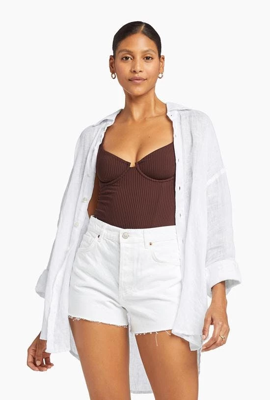 A little structure. This supportive, underwired bodysuit is pretty and functional.