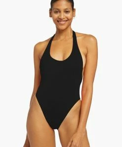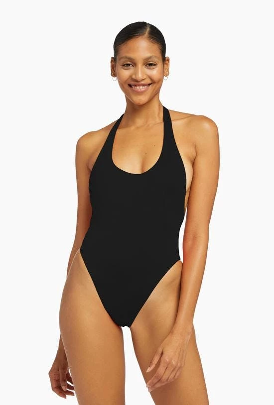 This sleek update on the classic halter top features a sexy scoop back and a high cut leg with cheeky coverage. Made with EcoLux, a superfine matte jersey fabric with superior stretch.