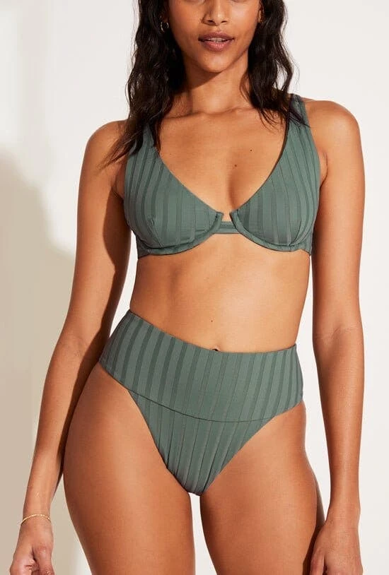 A little structure. A chic and versatile underwire swim top with adjustable straps and a tie back for a custoized fit. Moderate bust coverage and support.