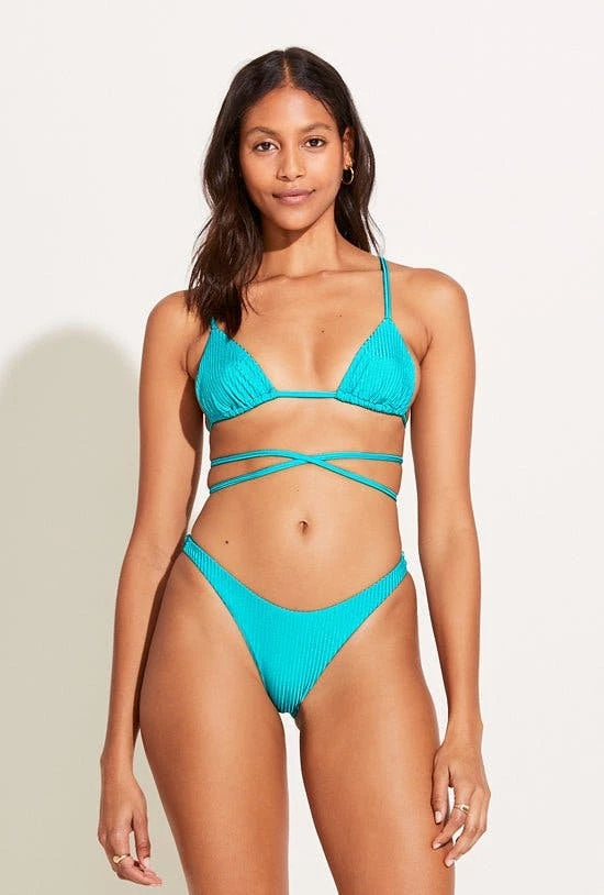 Your cheeky swim wardrobe essential now in upcycled fabric. Available in tropical prints & colors you can mix and match. Minimal coverage. The upcycled bikini collection uses salvaged deadstock fabric to help lighten the load on our planet and reduce waste.