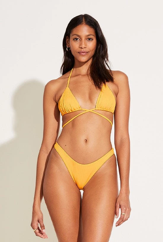 Criss cross. A wrap around triangle top you can wear two ways. Go classic or flip it upside down. Features cross over straps for added support and removable pads.