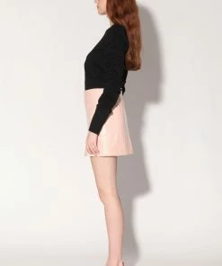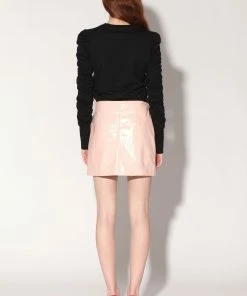 The Haley Skirt is an low rise mini with feminine edge in Walter Baker’s patent leather.