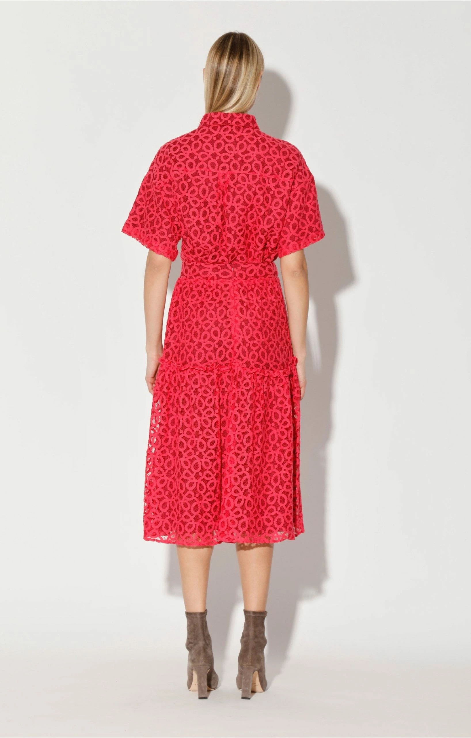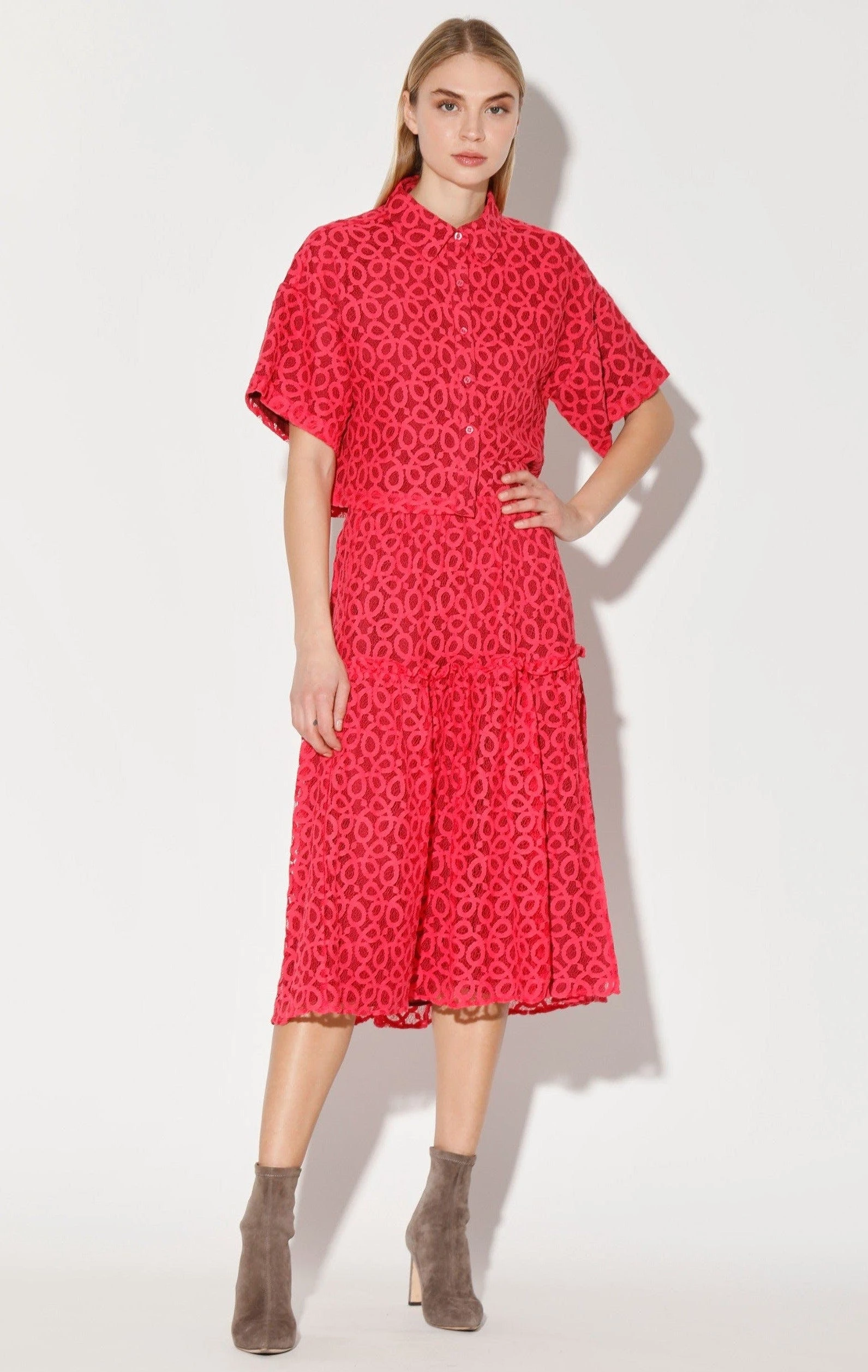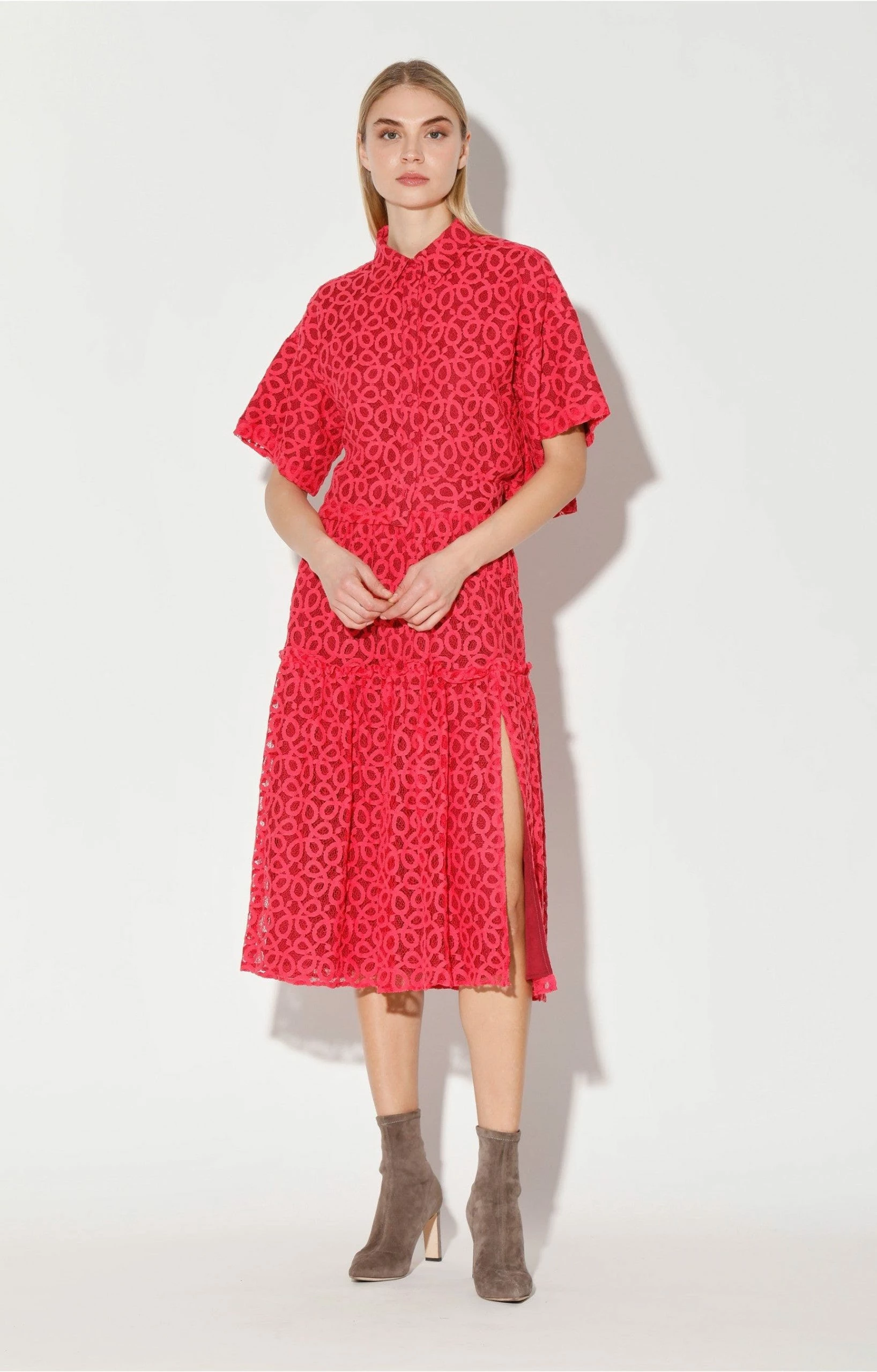 The Hydee Skirt is the ideal midi skirt in this lovely lace fabric with tiere detail and a front slit. Wear it with the Harrison Top for high end set style.