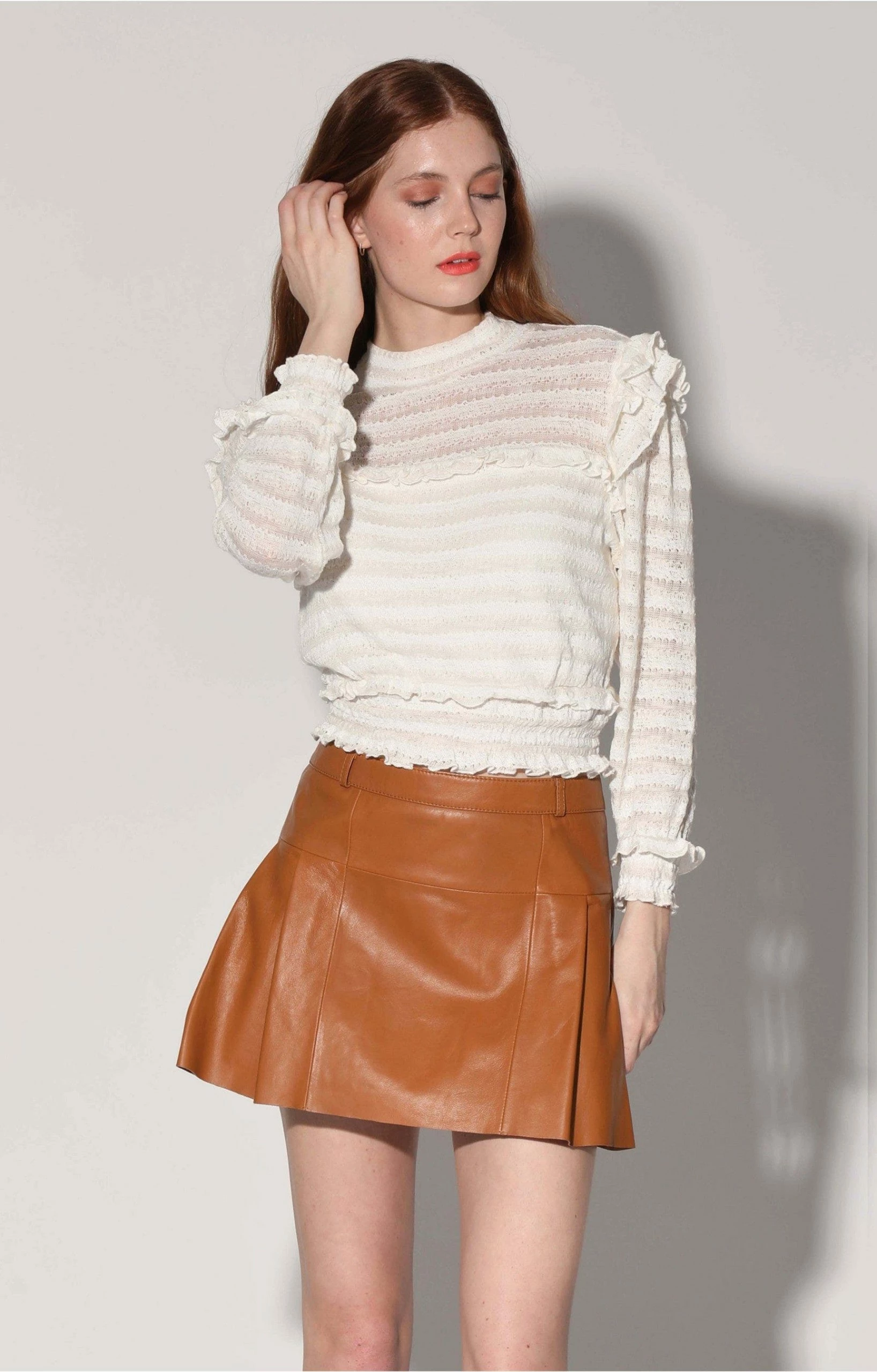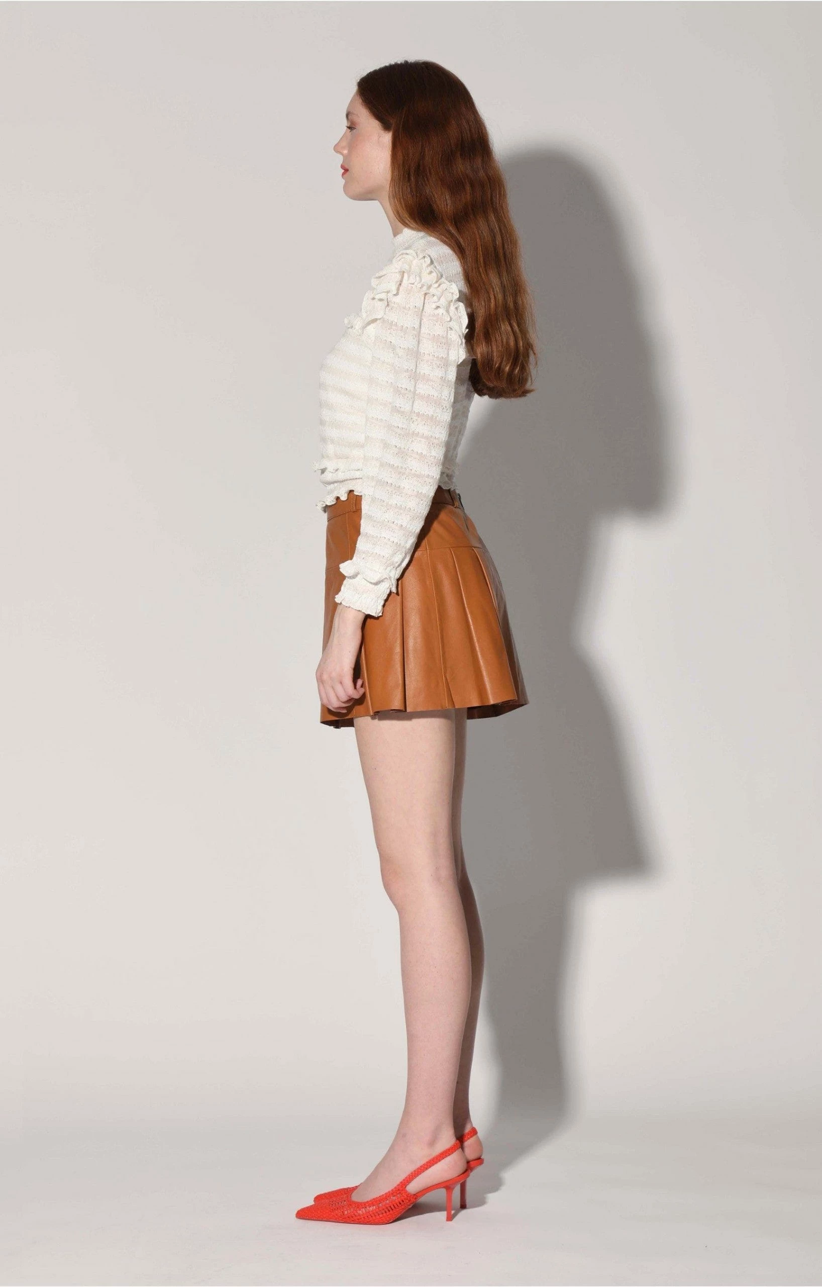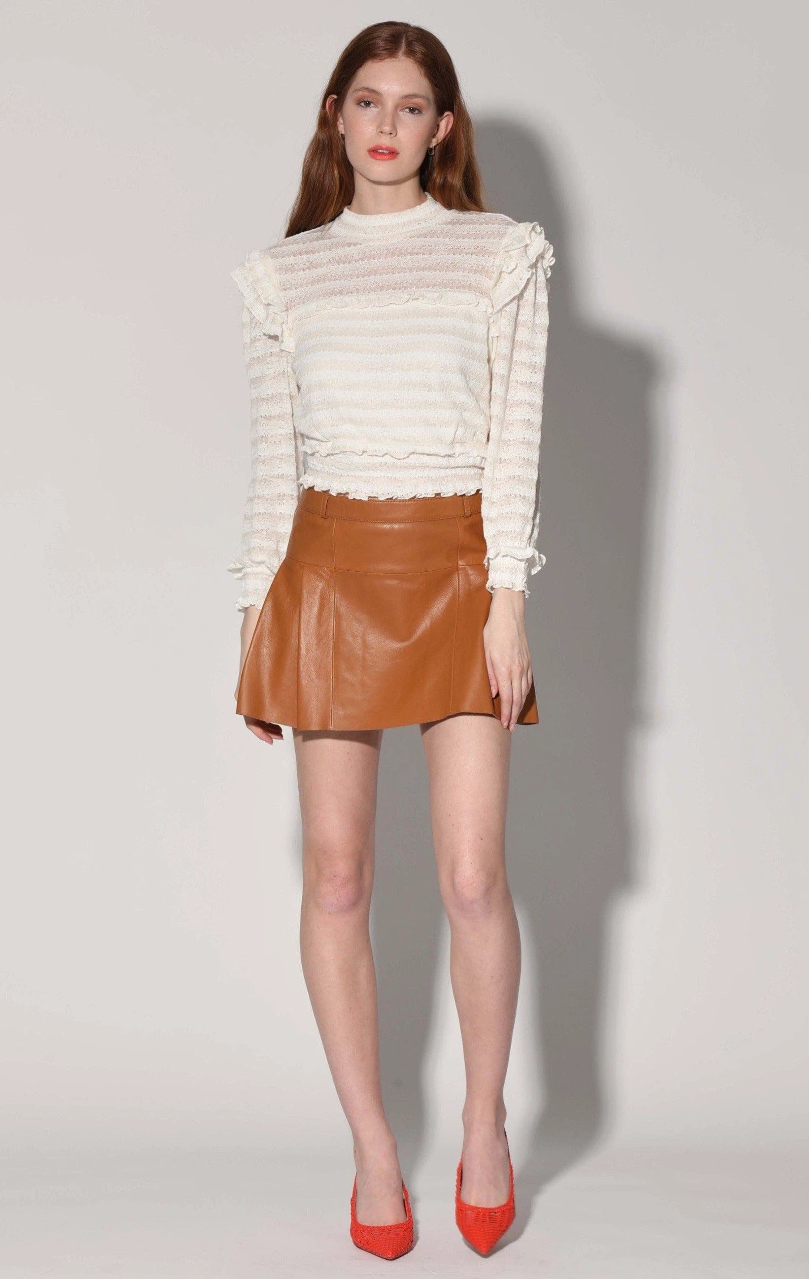 The Izzie Skirt brings attitude to the pleated mini with its low rise fit and the butter soft leather.