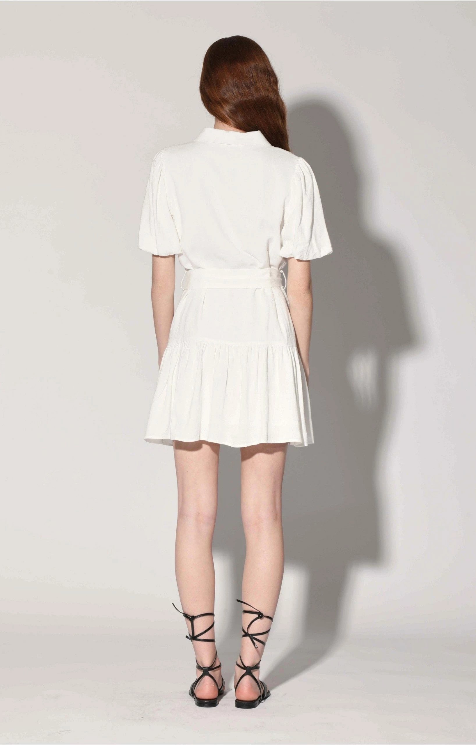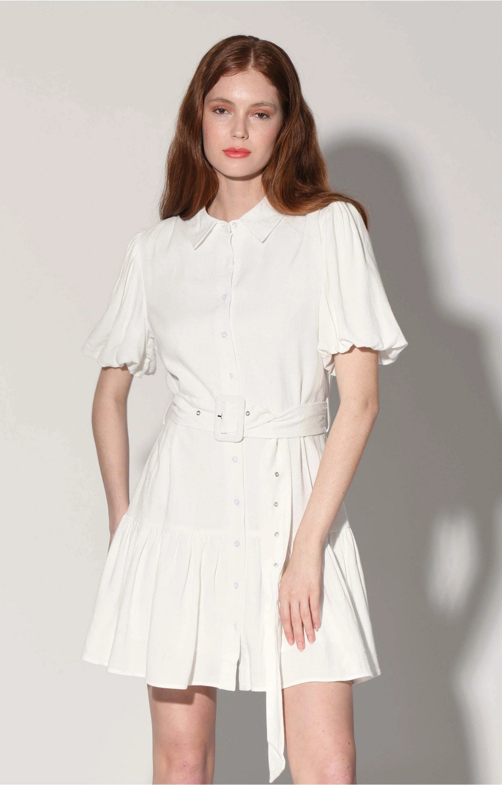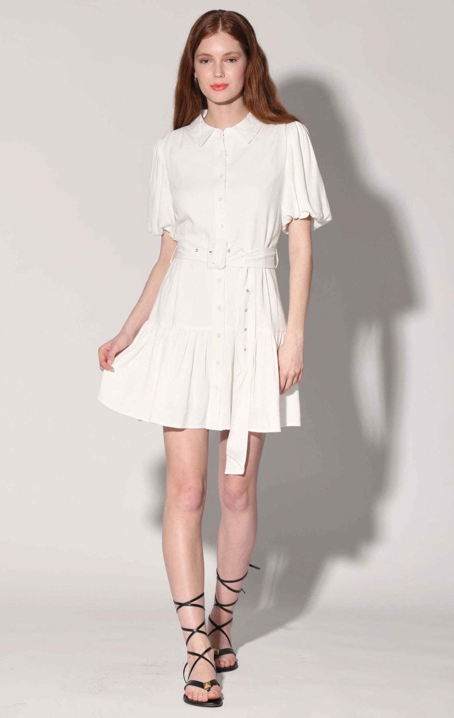 The Tyanna Dress features a drop ruffle and puff short sleeves that make this mini fun and flirty! Highlight your waist by cinching the self belt.