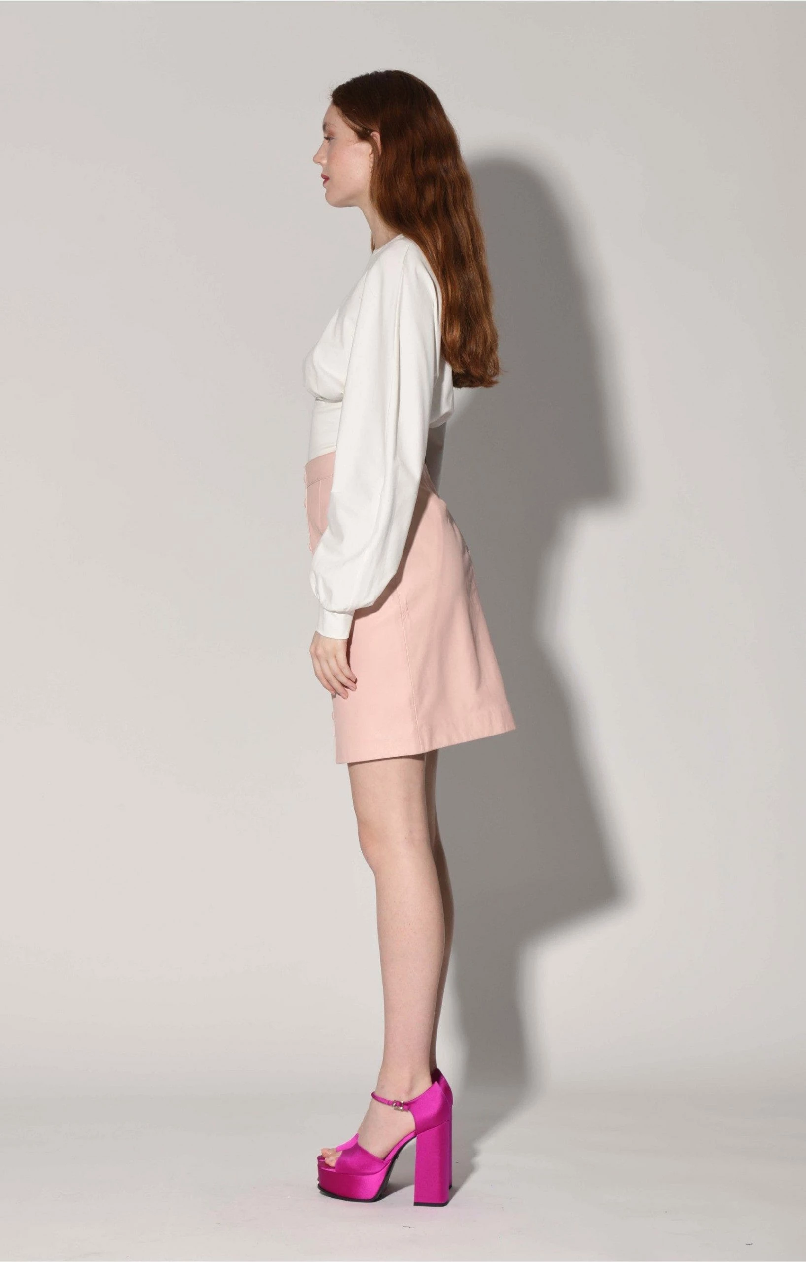 With side cut outs and button detail, the Viola Skirt is a pencil skirt with attitude.