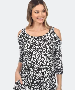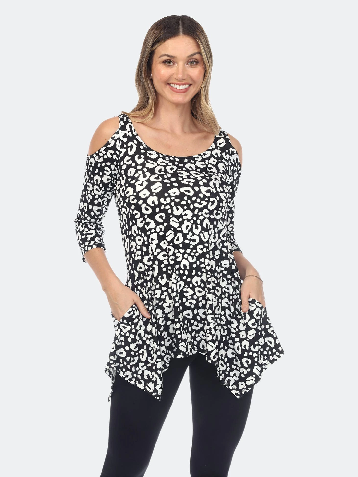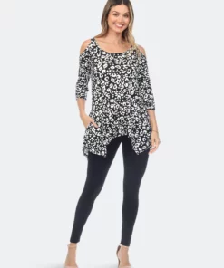 Bring vibrant energy into your wardrobe with this multi-color polyester and spandex top. The pattern and rich colors introduce a sense of fun, and the tunic design flows out from the bottom for comfort. The available larger sizes make this top perfect for the plus-size woman.